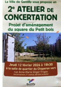 La ville de Gentilly propose aux habitants de venir au… Lire la suite : 12 Février 2026 : 2e Atelier sur l’avenir du Petit-Bois - L’association « Mieux Vivre à Gentilly » interroge les listes candidates aux élections municipales de mars 2026Présentation du projet Vous présentez votre candidature aux prochaines élections… Lire la suite : L’association « Mieux Vivre à Gentilly » interroge les listes candidates aux élections municipales de mars 2026